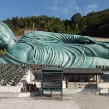 境内には巨大な涅槃仏が鎮座している。この涅槃仏の頭は城戸南蔵院駅からのホームからちょっと見える。