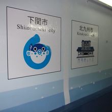 門司港側と下関側の地下エレベータホールにはそれぞれ半円のスタンプが置かれている。
