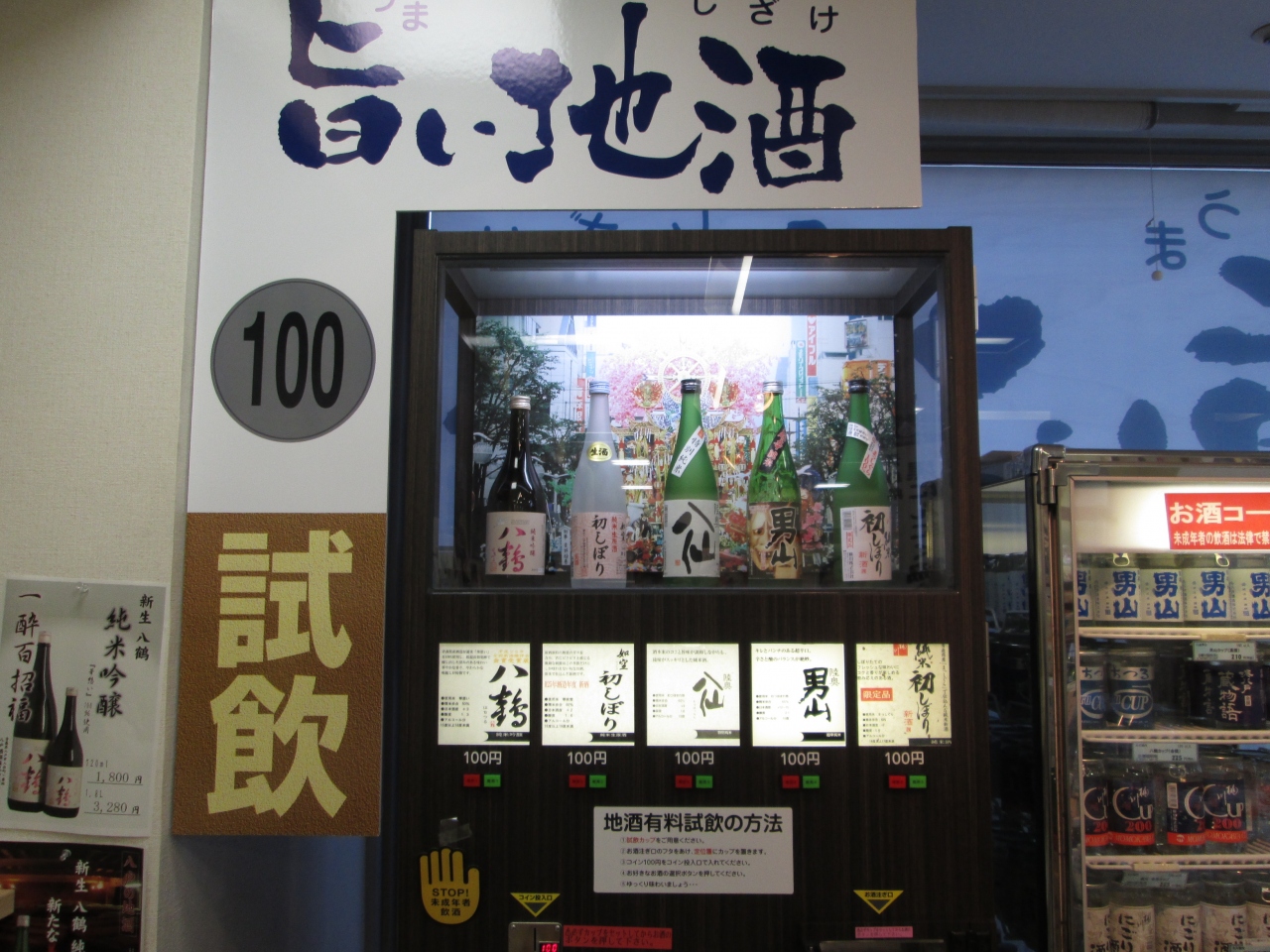 八戸駅前にあるユートリーの売店には、日本酒の有料試飲機があります。