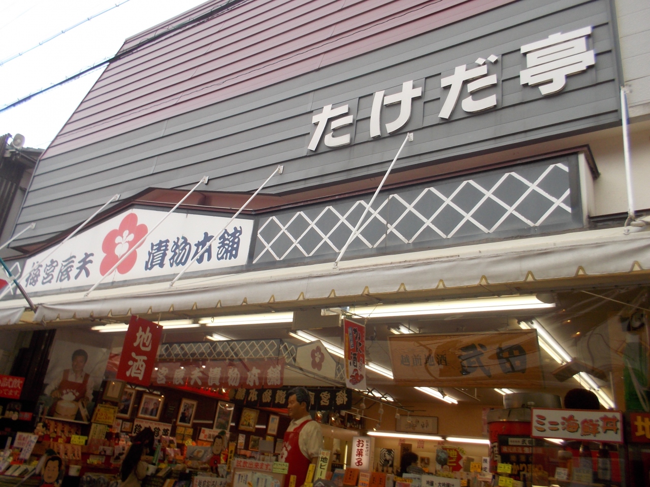 路線バスの「東尋坊」から岬の間の、小路沿いにあります。 お土産や食堂などの商店が左右に並んでいるので、どこに入るか迷いますが、この店は、割と外観が綺麗です。 しかし、商品見本と実際の食べ物が、すこし違っていました。