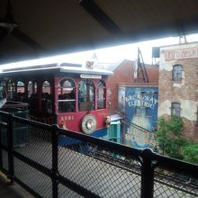 アメリカンウオーターフロントとミステリアスアイランドを往復している電車です。ミステリアイランドの駅にの絵には隠れミッキーがあったりします。海側の席に座ると店のバックヤードが見えたりもして車窓の変化も楽しめます。