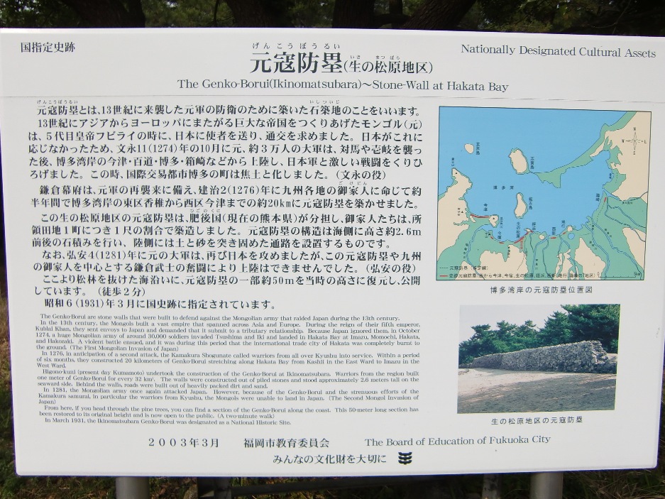 この防塁は、元の二度目の襲来に備えて築かれましたが、この防塁と鎌倉武士の奮闘により、上陸は出来ませんでした。