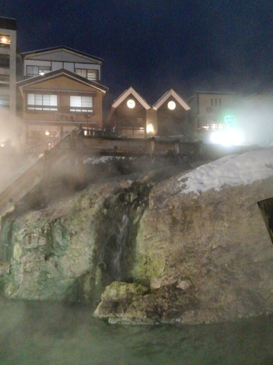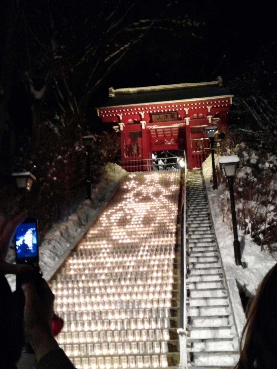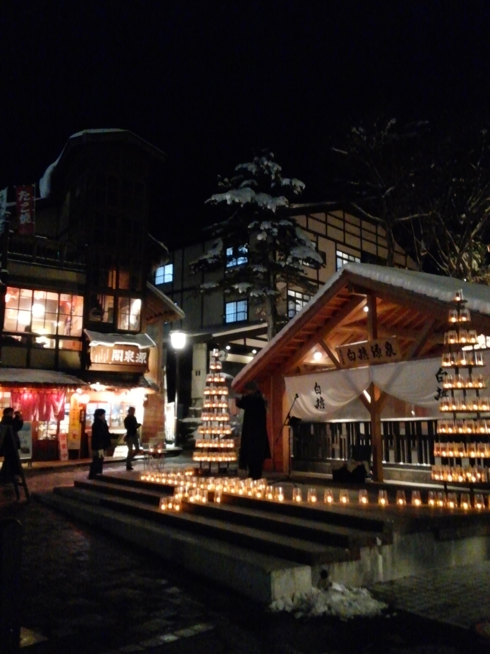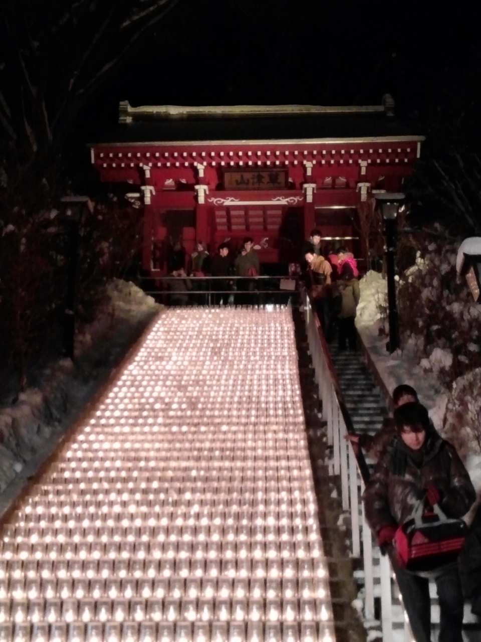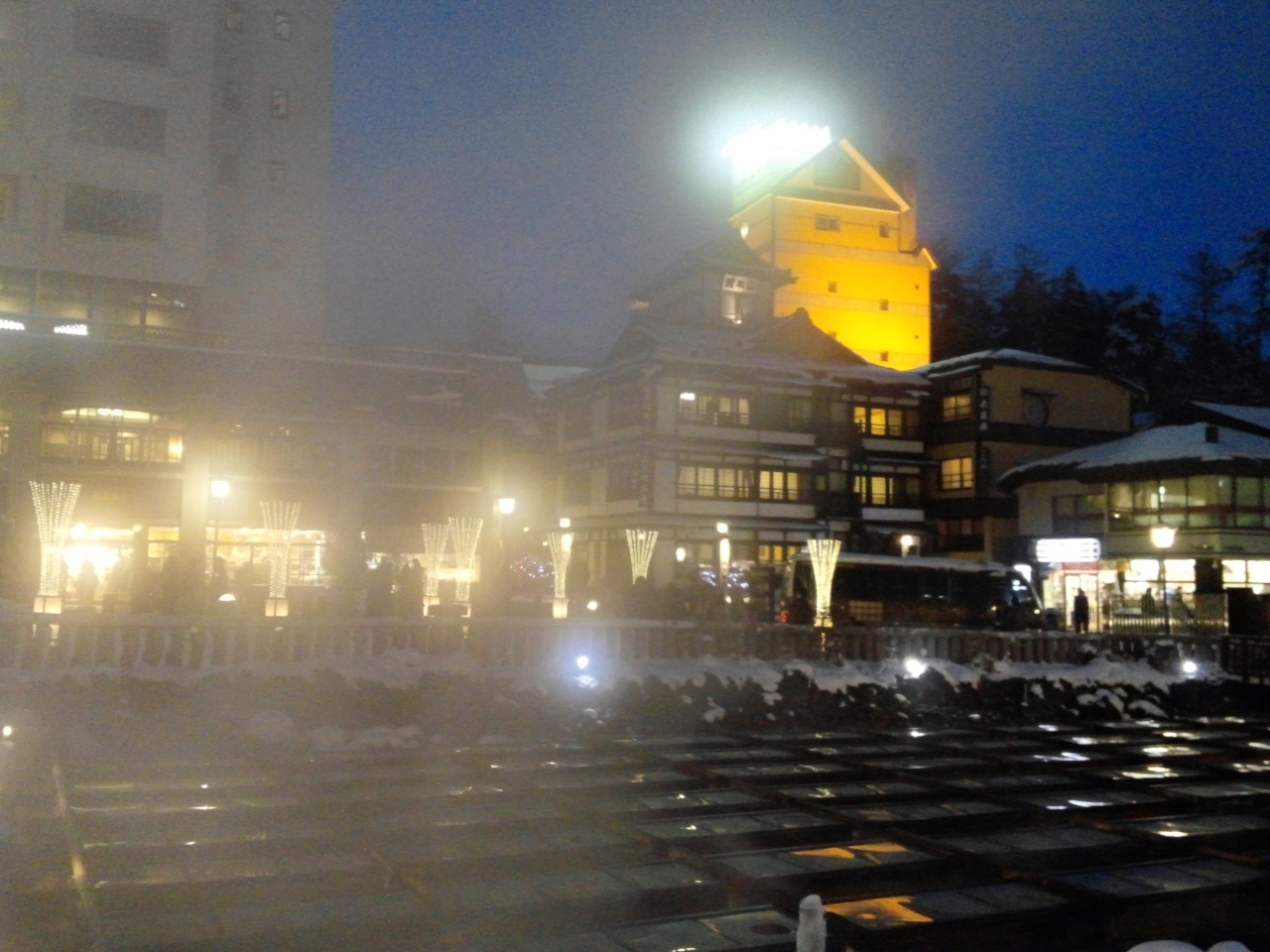 イルミネーションのある階段を上ると、光泉寺がありますが、そこはライトアップされていません。光泉寺以外のイルミネーションは、都会のイルミネーションと比べるとすごい印象はないですが、湯畑の湯気やエメラルドグリーンのお湯とのコントラストは一見の価値ありと思います。