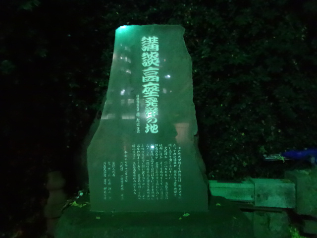 男坂の階段を上がりきったところにある鳥居をくぐってすぐのところに、いくつかの碑が建てられています。講談の「高座」発祥の地とされる湯島天神境内に、講談師で人間国宝の一龍齋貞水さんがその由来を示す記念碑を建立されたそうです。それ以前から講談は、街中で行われていましたが、湯島天神の境内で活動していた、講談師の伊東燕晋が1807年、徳川家康の業績を語る講談の時に、高さ三尺の高座を設けたことが高座の始まりとされているそうです。