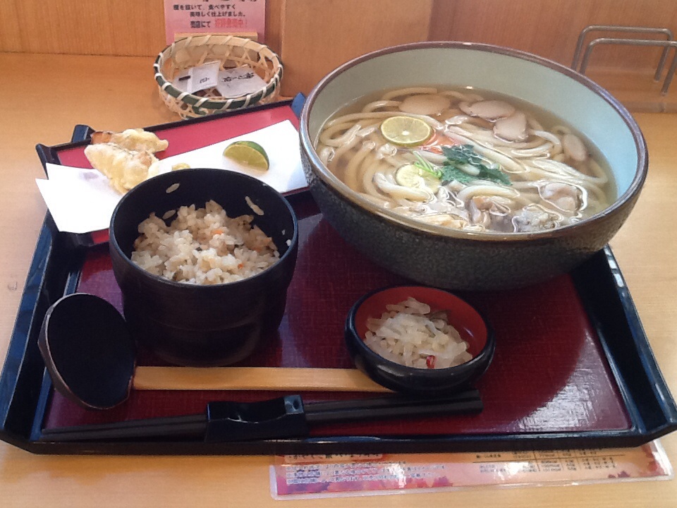 この日頼んだメニューは秋限定の松茸うどんでした。松茸うどん単品だと1130円でしたが、定食だと1230円なので定食を頼みました。定食のご飯はかやくご飯かいなり寿司を選べましたが私はかやくご飯を選びました。