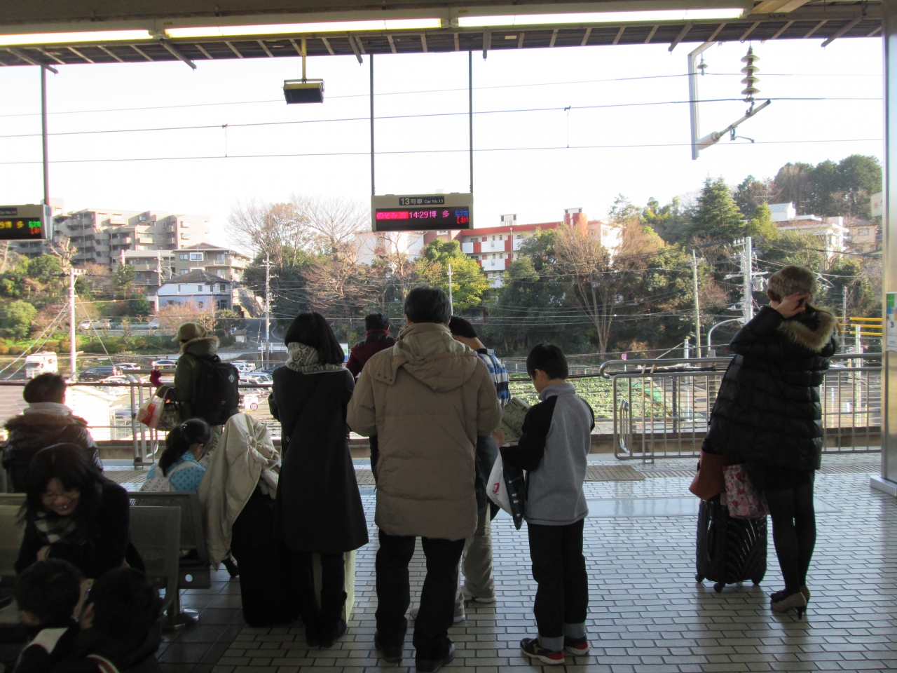 利用したこの日は年末の帰省ラッシュで駅構内が満員でした。夕方前の利用でしたが乗降客はピークだったと思います。駅の待合室、駅ホームの椅子に座れない人々であふれ、駅構内の売店は横浜・東京土産を買うお客さんでレジには大行列で、完売している商品がありました。
