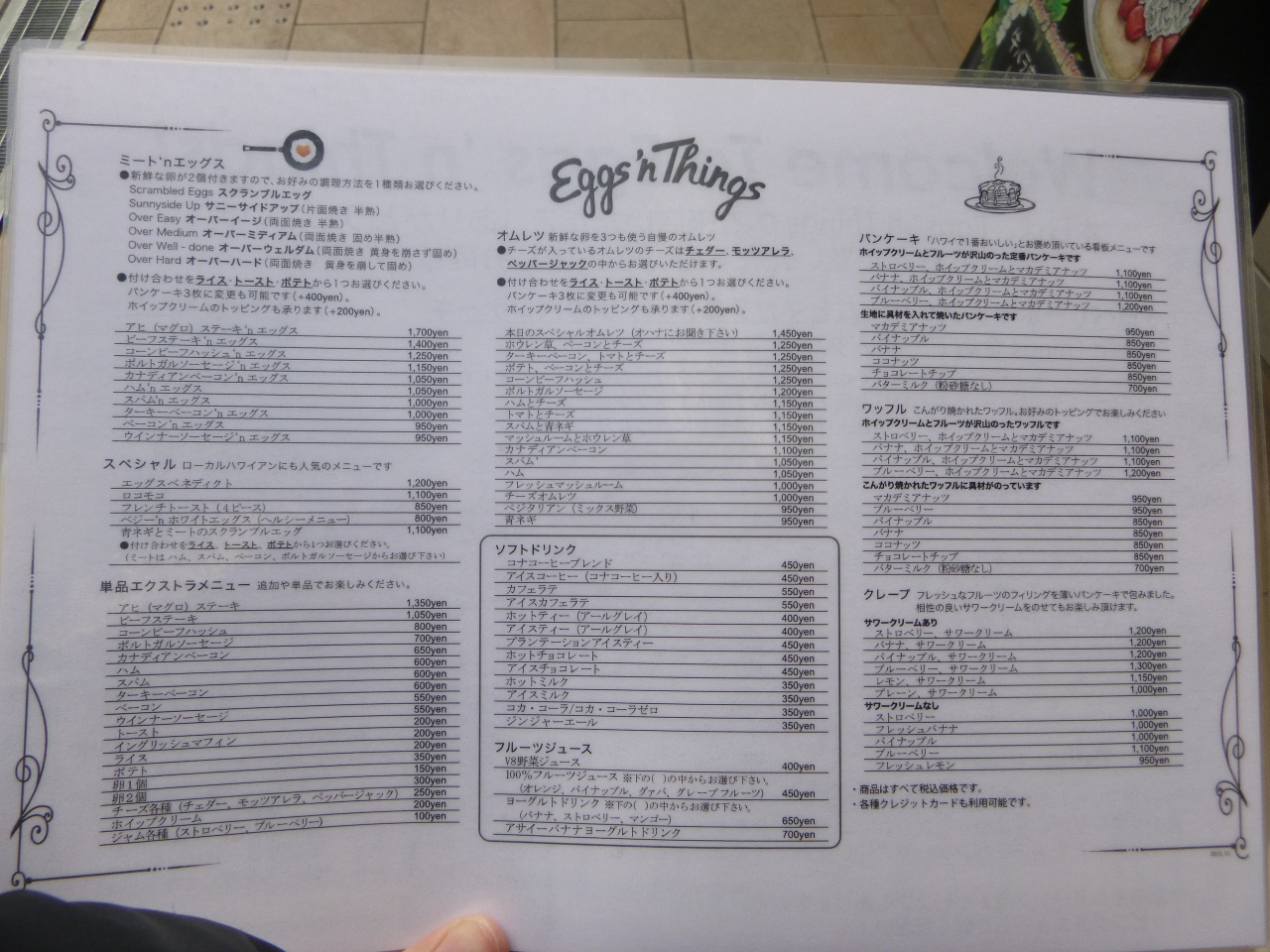 メニューは甘い生クリーム系とオムレツ、他にも玉子料理&ウィンナーなどもあります。