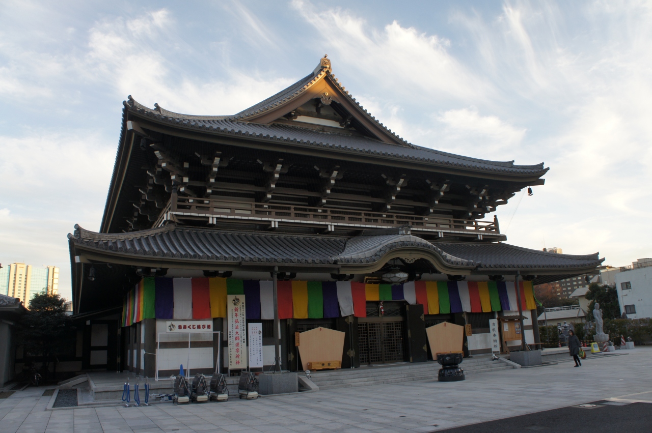 高野山東京別院は、高輪の高台にある、弘法大師のお寺。境内には、お砂踏場等があり、お遍路の関係もあって、それなりの雰囲気も。本堂の前に、なんでも願い事を書いてくださいという大きな絵馬が置いてあって、誰も何も書いていませんでしたが、逆に、なんだか心が和みました。