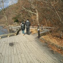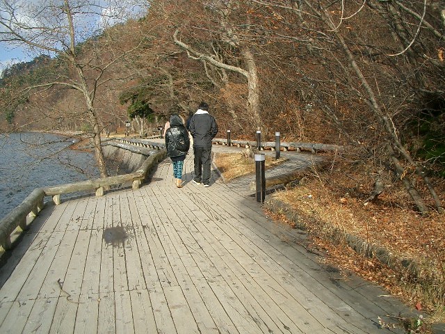 十和田湖畔の遊歩道は木道が整備され、夜間はフットライトも灯されます。この遊歩道は2013年10月に公募により「乙女の湖道(オトメノコドウ)」と命名されました。ネーミングのセンスも抜群ですが、なにより湖畔を、足元を気にせずに散策できるので大変ありがたいです。