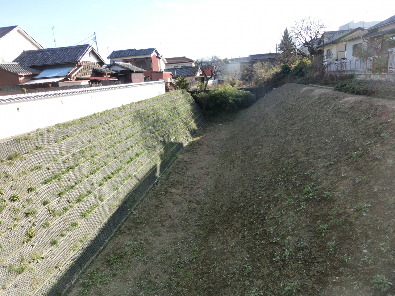 堀がそのまま残っており、沿って住宅が並んでいるというのはあまり見ない光景です。
