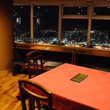 お勧めはカウンター席ですが、テーブル席も一段高い場所にあるので、夜景はちゃんと見られます。