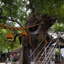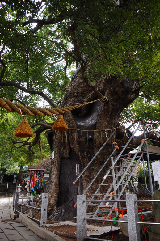 原爆の爆風で片側を吹き飛ばされた鳥居で知られる山王神社の境内には、原爆の熱線で焼かれたにもかかわらず、見事に蘇った大きな楠が二本立っています。