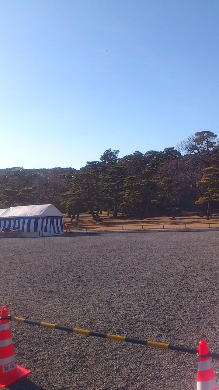 砂利が敷かれていて、遠くには松や二重橋を見ることができます。