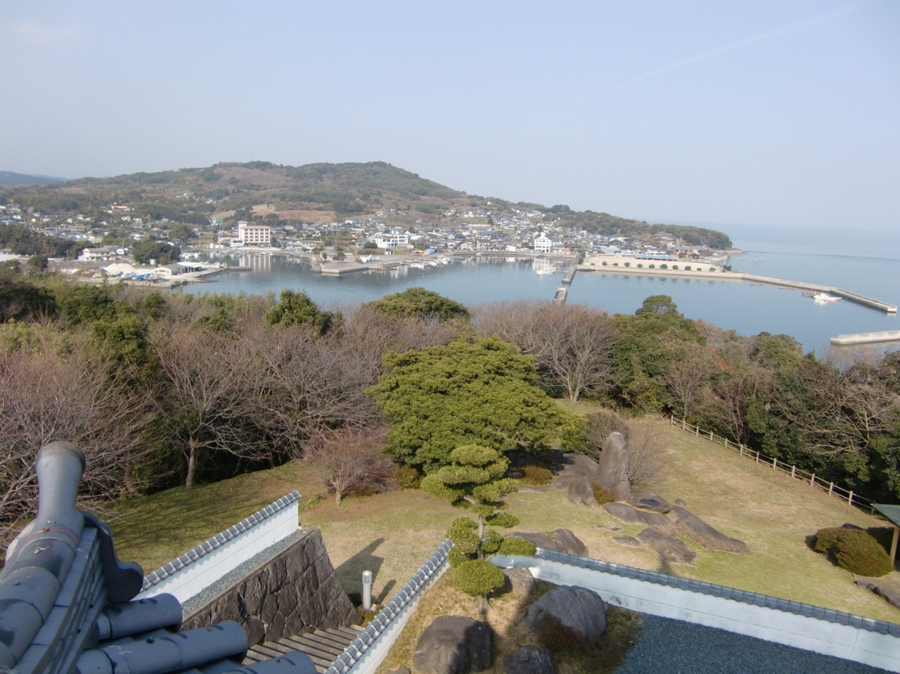 南北朝時代に、島原の有馬氏によって築城された竹崎城の跡地から少し離れた場所に造られた、城郭風の展望台です。