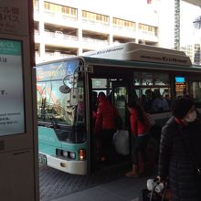 緑色の車体が目印で、乗車してから8分程で国際線ターミナルにつきます。時間がある時に国際線ターミナルに行くのに便利です。ちなみに無料です。