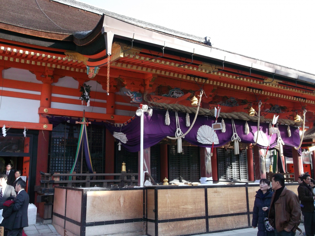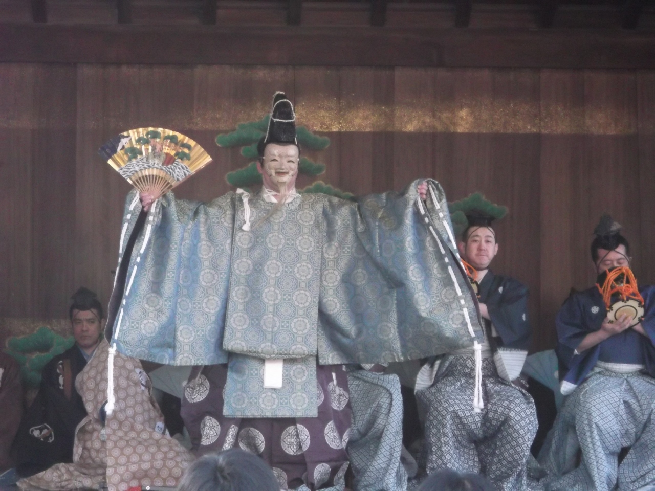 本殿の横にある舞台では早朝ではあったのですが「能」が行なわれて