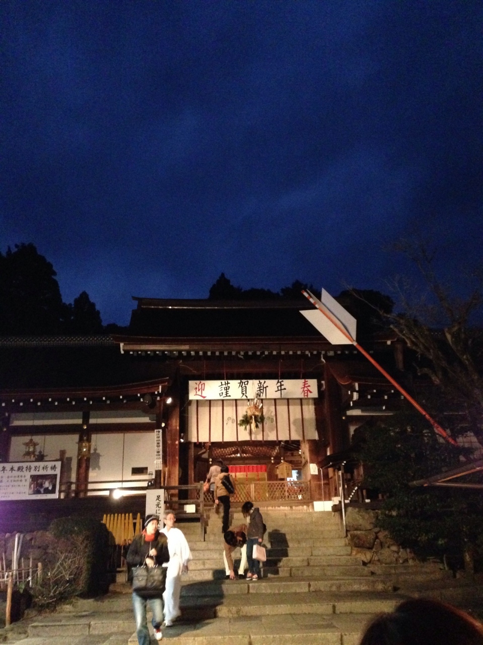 今年は結婚式を挙げた上賀茂神社へ初詣へ。さすがの元旦の京都は混んでいるかと思い、5時に豊中を車で出発。さすがに道路はガラガラ。6時には上賀茂神社に到着し、サクッと初詣が出来ました。もちろん、巫女さんはいて、お守りや立て矢も買えたので、早朝でも支障ありません。元旦の初詣は早朝に限りますね。