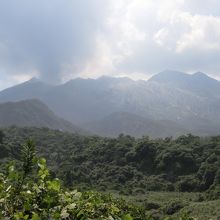 山の側面に沿って景観が変わっていく噴火口を見ると圧巻です