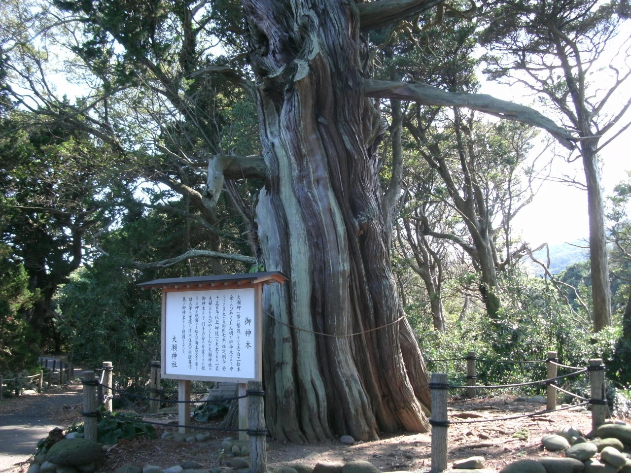 日本最北端のビャクシンの自然群生地で、国指定の天然記念物にしていされています。大瀬崎一帯には、130本ほどのビャクシンがあり、中でも周囲7m、樹齢1500年以上という大瀬崎で最も大きいビャクシンは大瀬崎神社のご神木として祀られています。