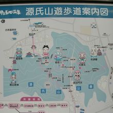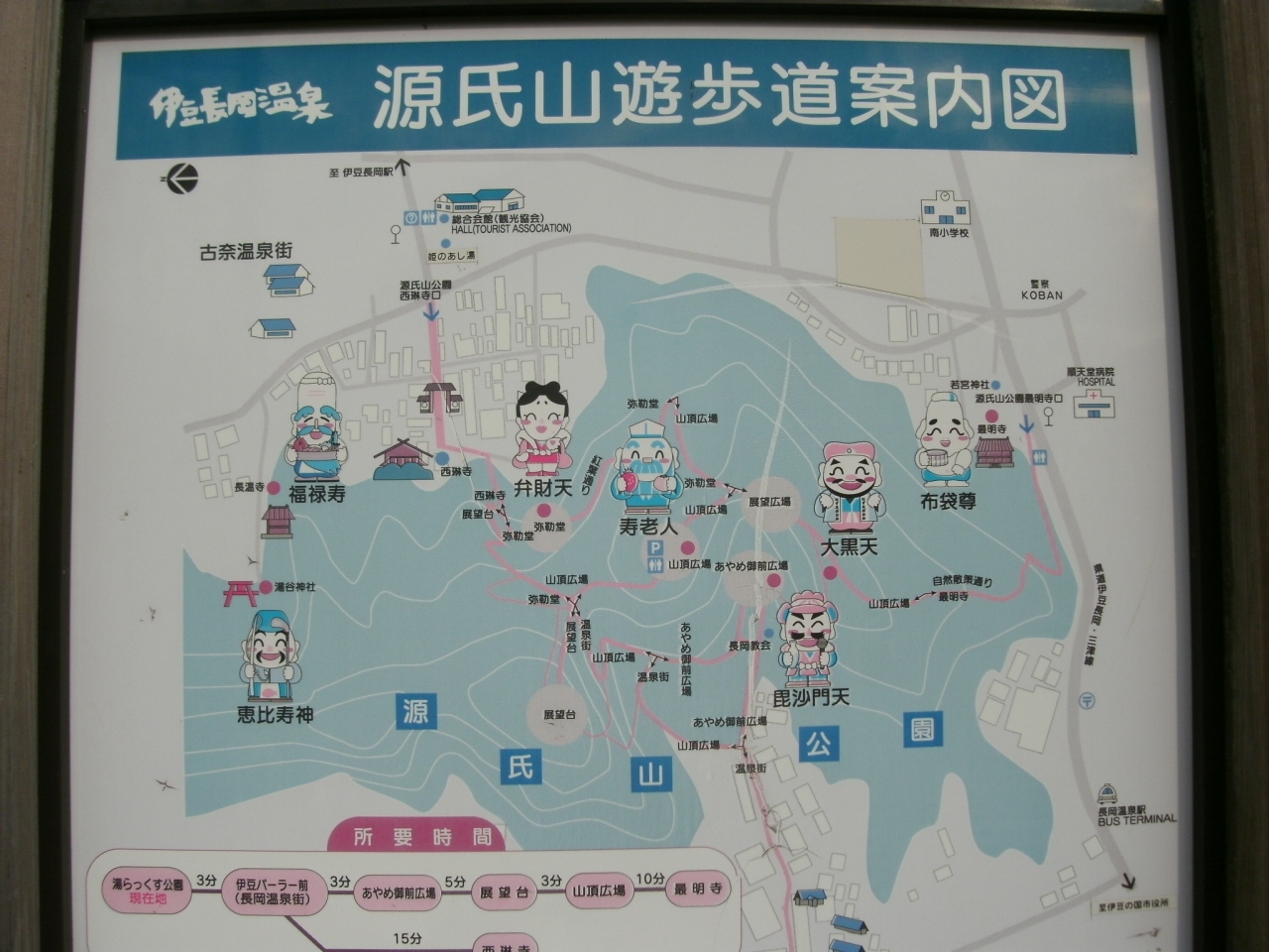 伊豆長岡温泉街の中心にある小高い源氏山全体が公園です。いくつかの散策路(添付写真を参照下さい))があり、徒歩約15分で山頂に達することが出来ます。頂上は広場のようになっており、トイレ、駐車場、展望台などがあります。展望台からは狩野川や長岡の温泉街と天城の山を見渡すことが出来ます。遊具などは一切なく自然の公園ですので、暇つぶしに散歩する程度で良いと思います。