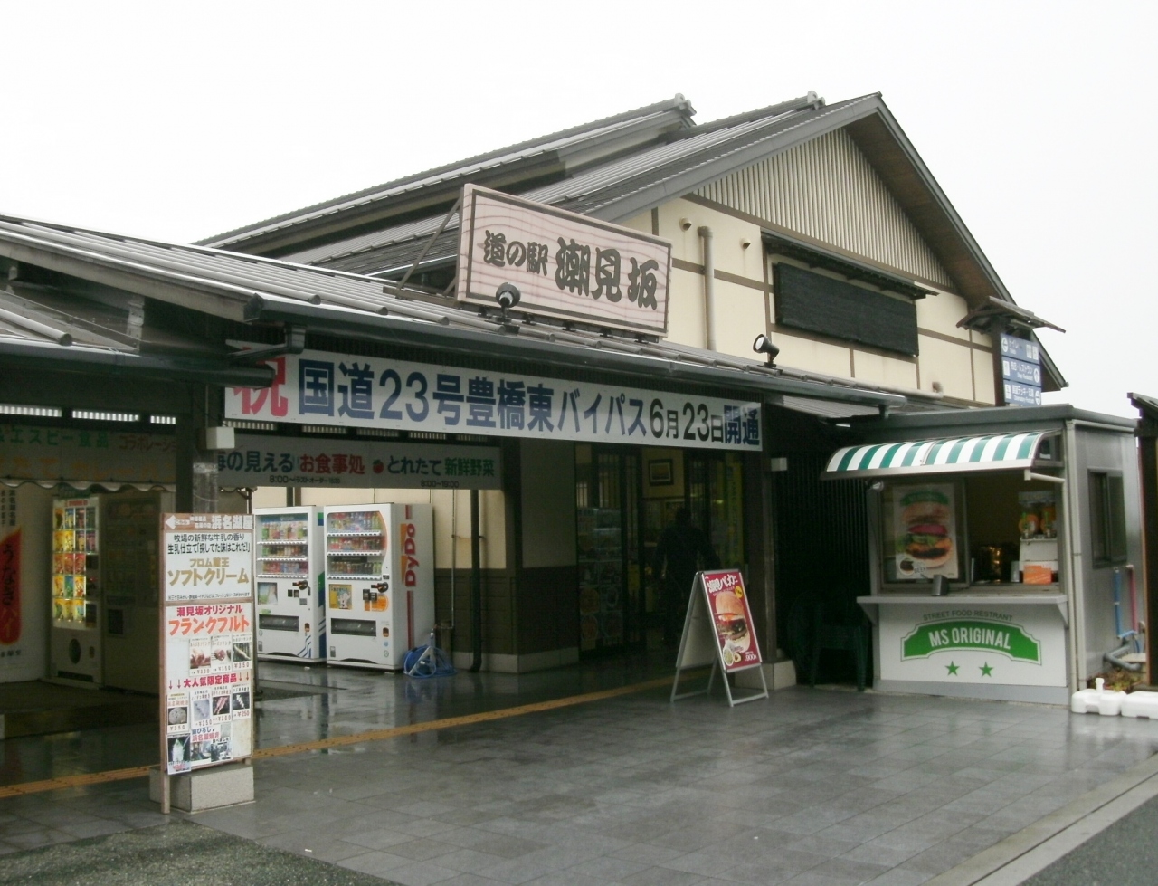 「道の駅 潮見坂」は、国道1号線の自動車専用道路(無料)の潮見バイパスにあり、バイパス上下線両方から利用できます。遠州灘を眺める海沿いに立っていますので景色がよく、砂浜までおりていけます。地場産の新鮮な野菜や果物、花などに加え、海産物の加工品の販売も多いです。遠州灘を見ながら利用できる足湯もあり、ゆっくりと休憩するのに最適です。