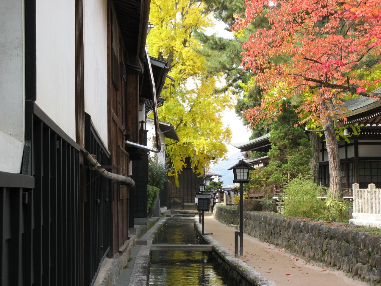 「飛騨街道」は、中山道太田宿(美濃加茂市)から下呂市をへて高山市に至る飛騨(南)街道、さらに飛騨古川をへて富山に至る飛騨(北)街道のことで、現在の国道41号線はほぼ同じ様なところを通っています。街道には金山宿や下呂宿、高山宿、古川宿、富山宿など15箇所の宿場があったそうで、いまも昔の面影を残しているところが多い。10月中旬に国道41号線を北上しましたが、飛騨古川の町は宿場町の面影を残す古い街並みと紅葉がとても素敵なところでした。
