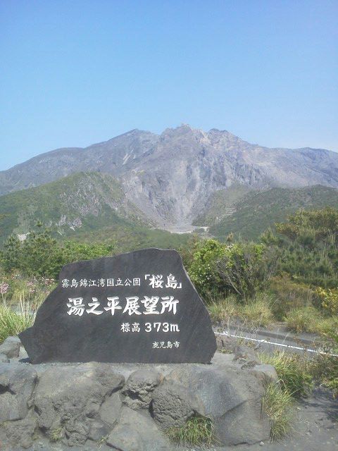 北岳の4合目、標高373mにある湯之平展望所は、桜島において一般の人が入ることの出来る最高地点だそうです。この日はあまり噴煙の出ていない大人しい姿でしたが、とても天気がよくて、いい眺めを楽しめました。
