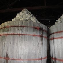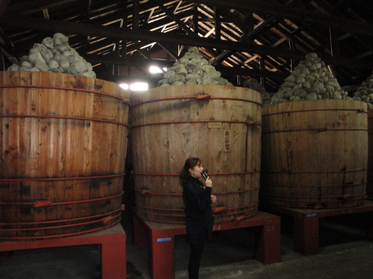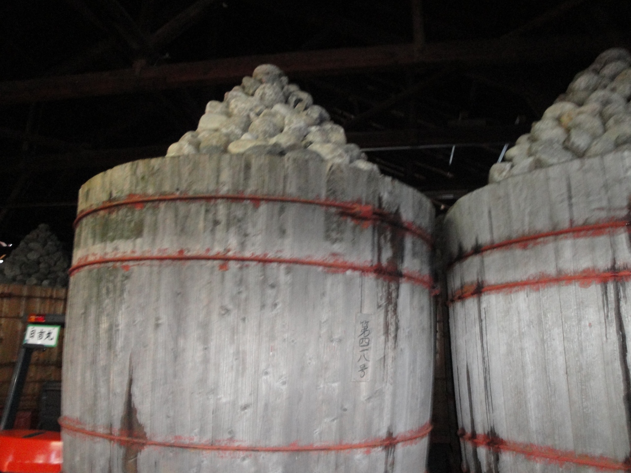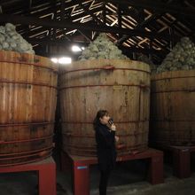 とても大きな木の樽に石が乗せてあって(かげんが難しいそうです。)