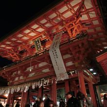 初詣はかなりの人出になります。また、屋台も多くたっていて、屋台の奥の方で食事の出来るスペースもありました。