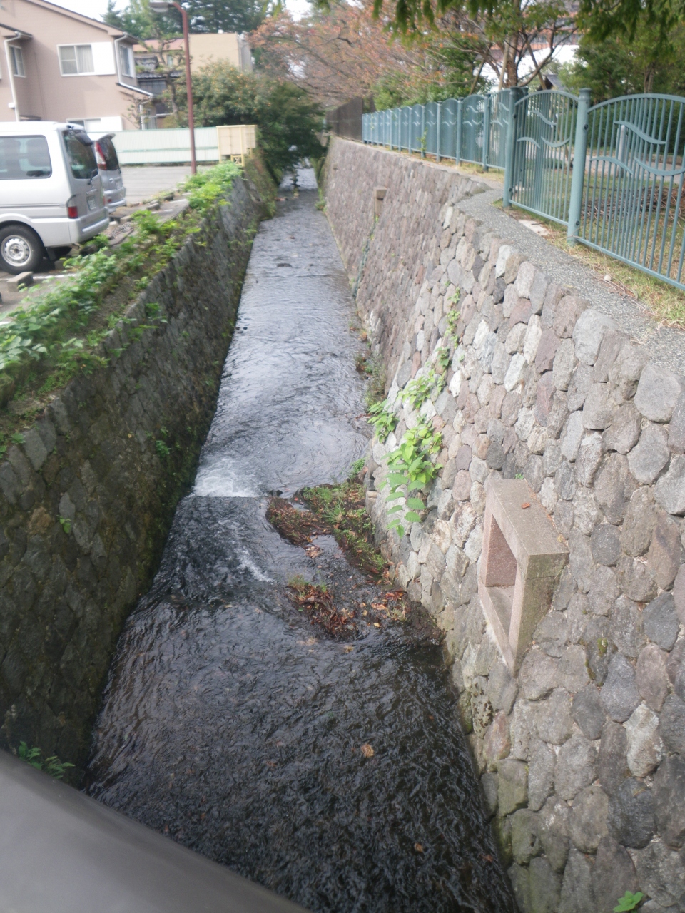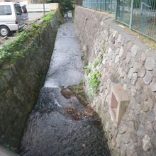21世紀美術館の南側に西外惣構の堀が流れています。美術館を建築する際に土居部分の発掘調査をしたところ、堀に面して土居盛土とその土どめ石、幅約5.5mの砂利道と石組みの側溝、武家屋敷の土塀基礎の石垣が約160mにわたって見つかったそうです。