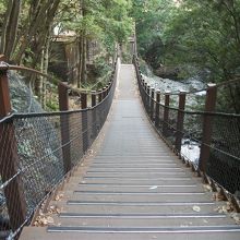 最近初景滝から先がつながり階段式の珍しいつり橋を渡ることができます。