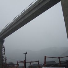 下には道の駅が出来ていて小さいながら駐車場もあります。やはり以前の朱色の鉄橋が趣ありましたが模型が道の駅に展示されています。