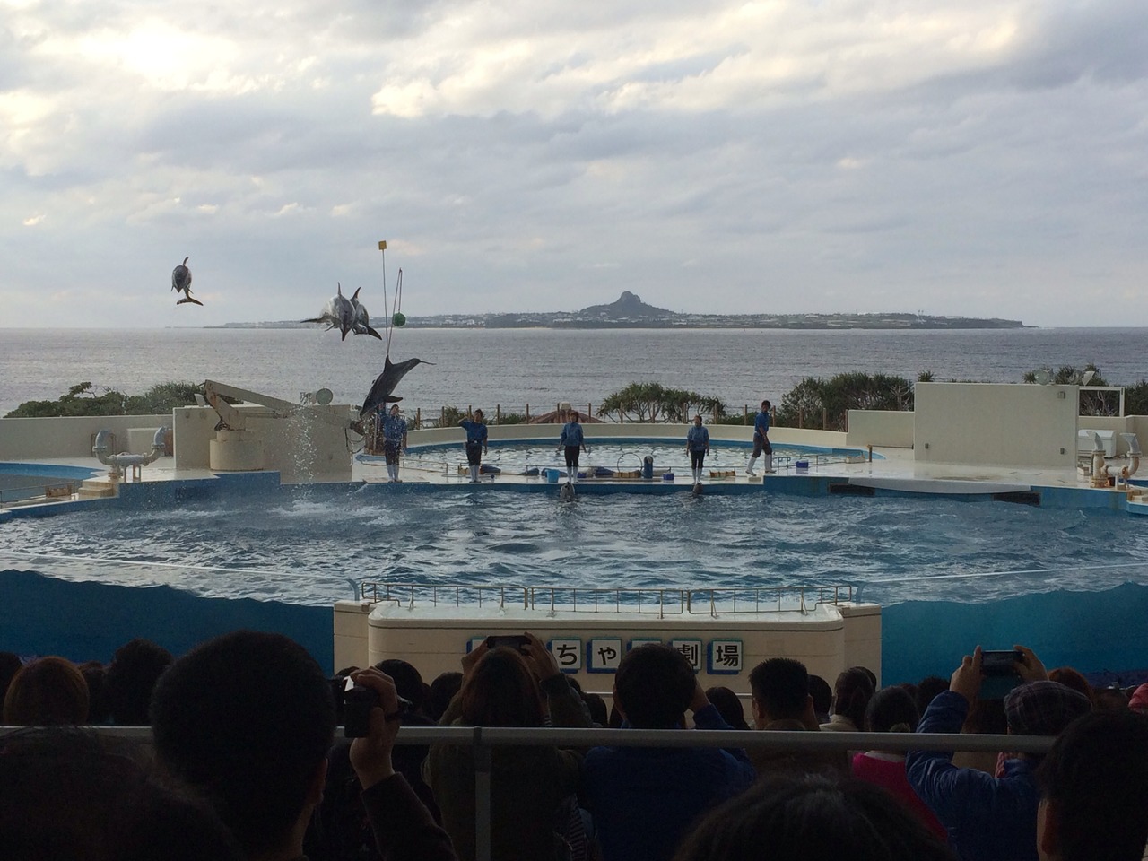 伊江島を目の前に広大な海洋公園が広がっています。この中にいくつかの施設があり、その一つが美ら海水族館です。無料の施設や遊歩道、エメラルドビーチなどもあり、無料でも一日楽しめそうです。無料の施設の中にはオキちゃん劇場があり、イルカのショーを見ることができました。とても充実したショーで無料で見られることが信じられません。