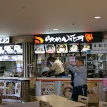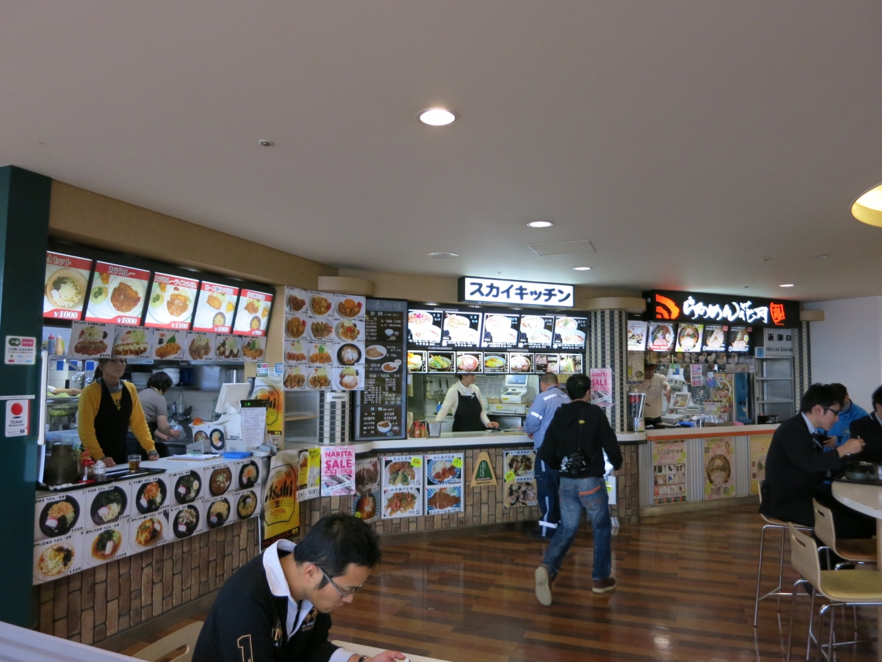 成田空港の第1ターミナルの5階のフードコートに入っているラーメン店です。フードコートということで、他の店と共同の食堂ですが、目の前が展望デッキとなっており、外に面したテーブルもあるため、食事をしながら飛び立つ飛行機の眺めも楽しめます。