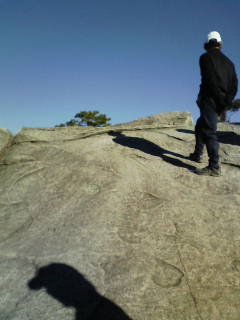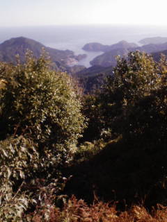 尾鷲の「蔦や」さんに泊まり、馬越峠、天狗倉山、馬越峠、海山の予定だったが、宿のご主人に勧められ、岩屋に寄り道する。見事な大岩に観音様、すると、天狗倉山への登山道の案内があったので、そこから登山、登りきると、大岩がいっぱい、鉄梯子で岩に登ると、白く雪をかぶった大台が原も見える。熊野灘、入江も絶景でした。
