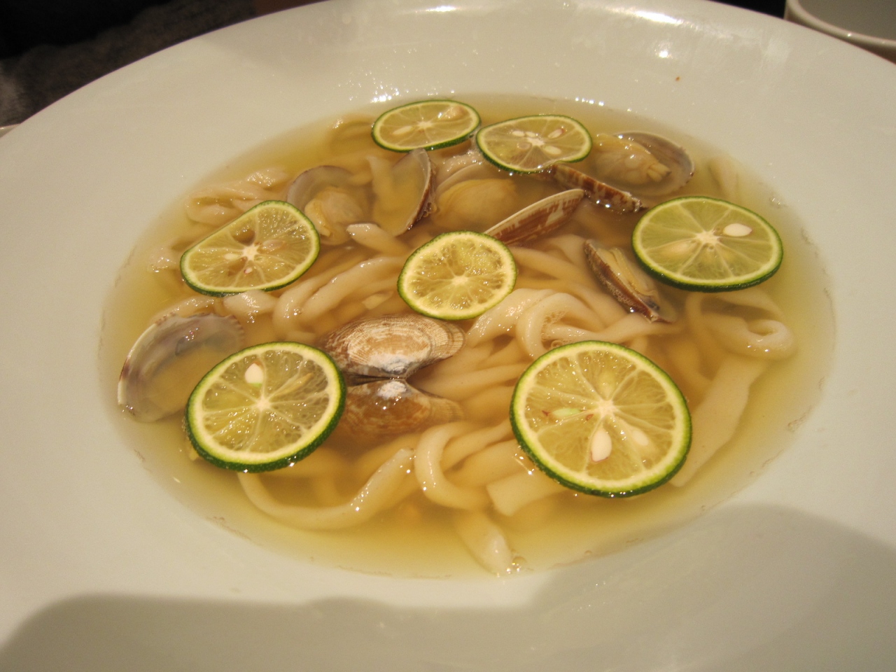 洋風にアレンジしたうどんは、見た目がパスタのようだが、味はしっかりだしがきいています。