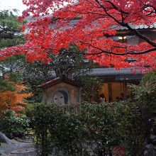 目の前には小さな庭園 往時は紅葉真っ盛りです。