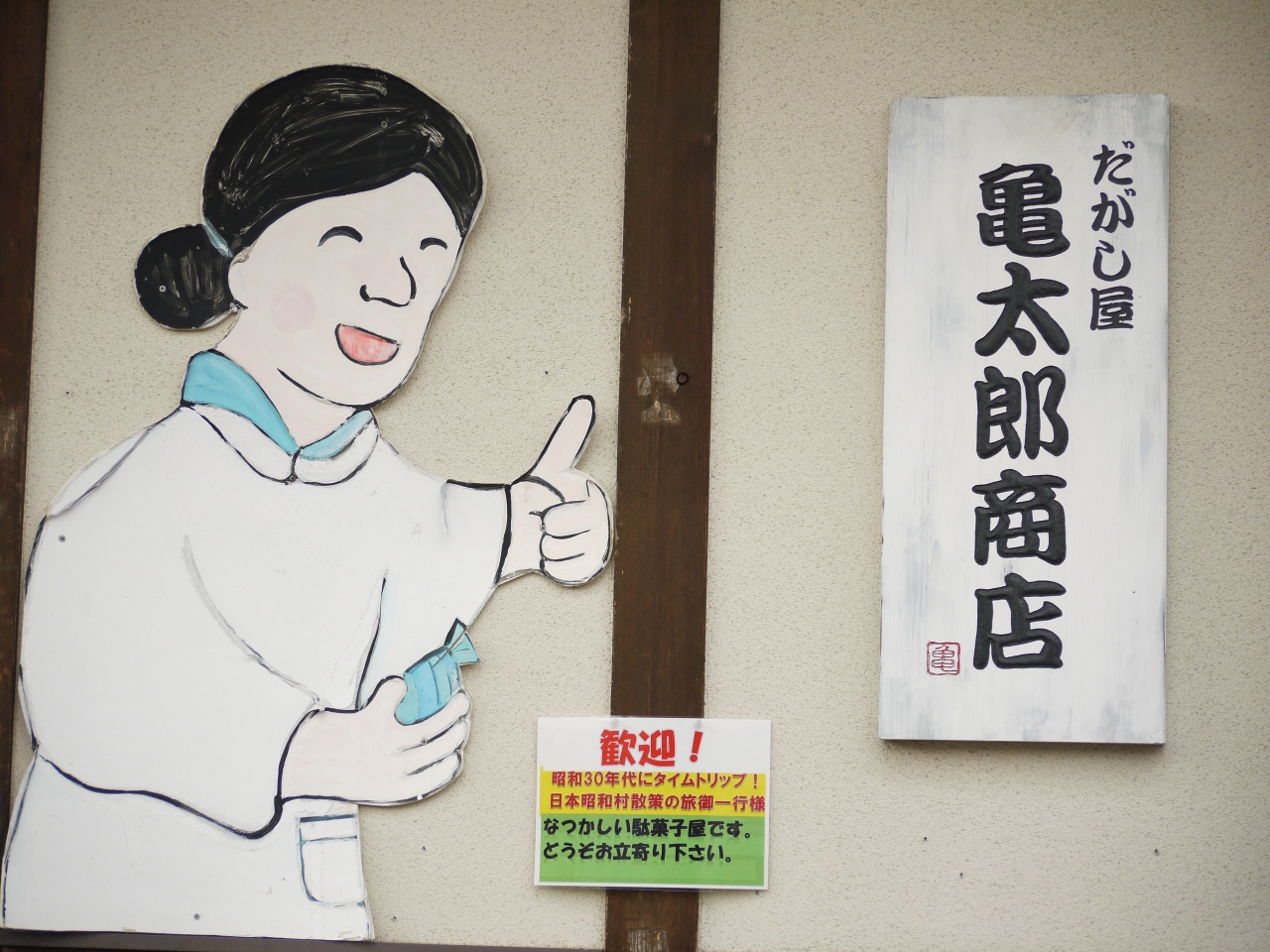 長男がもう一度行きたい、といった理由は、風車づくりや竹とんぼづくり、お煎餅焼き体験をやりたい、ということだったようです。そういえば、昔は父親が竹馬も竹とんぼも、簡単に作ってくれたなぁなどと思い出しながら、ゆっくりのんびりできました。派手さはないので、人は閑散として、ちょっと寂しい雰囲気だったのが残念。昭和村に隣接した銭湯があるのですが、いっそのこと昭和村の中に作ってしまえばよかったのに・・・。