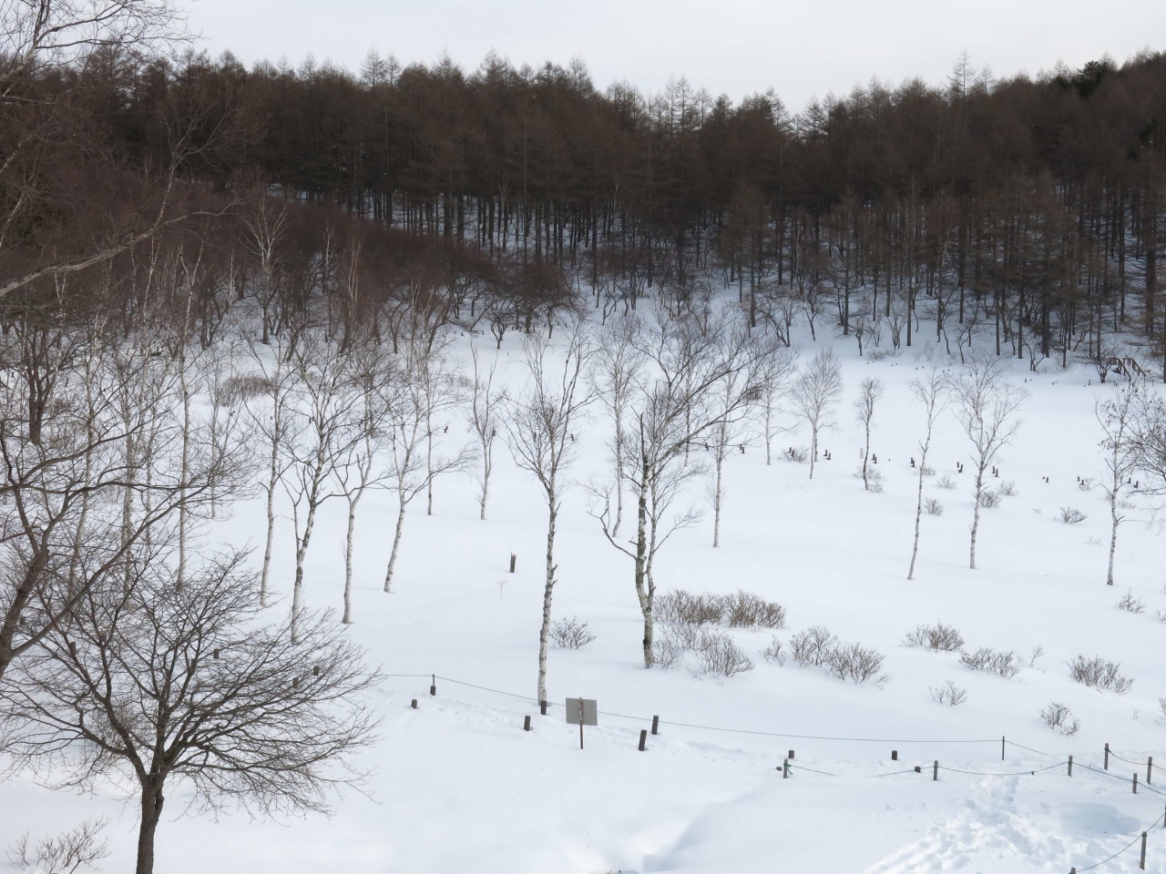冬の湿原に出かけてみました。結構雪深かったけど、普通の登山靴で何とか散策できました。スノージューで歩いている方が多かったので、このあたりは、スノーシューコースになっているのでしょうね。静かな白い世界です・・・雪を踏みしめる「キュッ・キュッ」という音色がとても心地良かったですよ。トイレも開いていたので、ちょっとビックリ・・・訪れる方が多いのでしょうね。