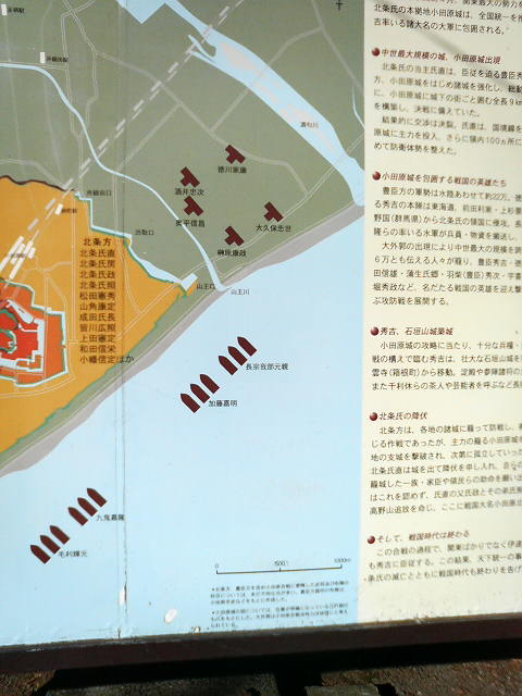 園内にはかつての城主である北条氏が豊臣秀吉との戦いを経て降伏するまでの歴史説明がある他、紅葉に染まった木々も随所に見られます。