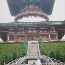 高さは約58メートルと、かなりの高さがあり外観は二重塔ですが内部は5階建てになっています。1階は写経道場、展示スペースなどで、2階には不動明王などの5大明王が祀られています。無料で入場できます。