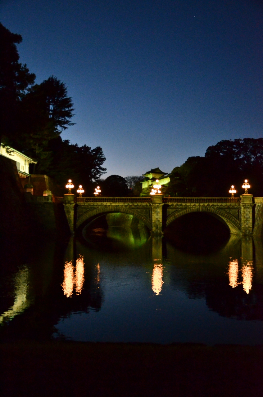 2012年頃から再開された、皇居・二重橋の夜間ライトアップ。