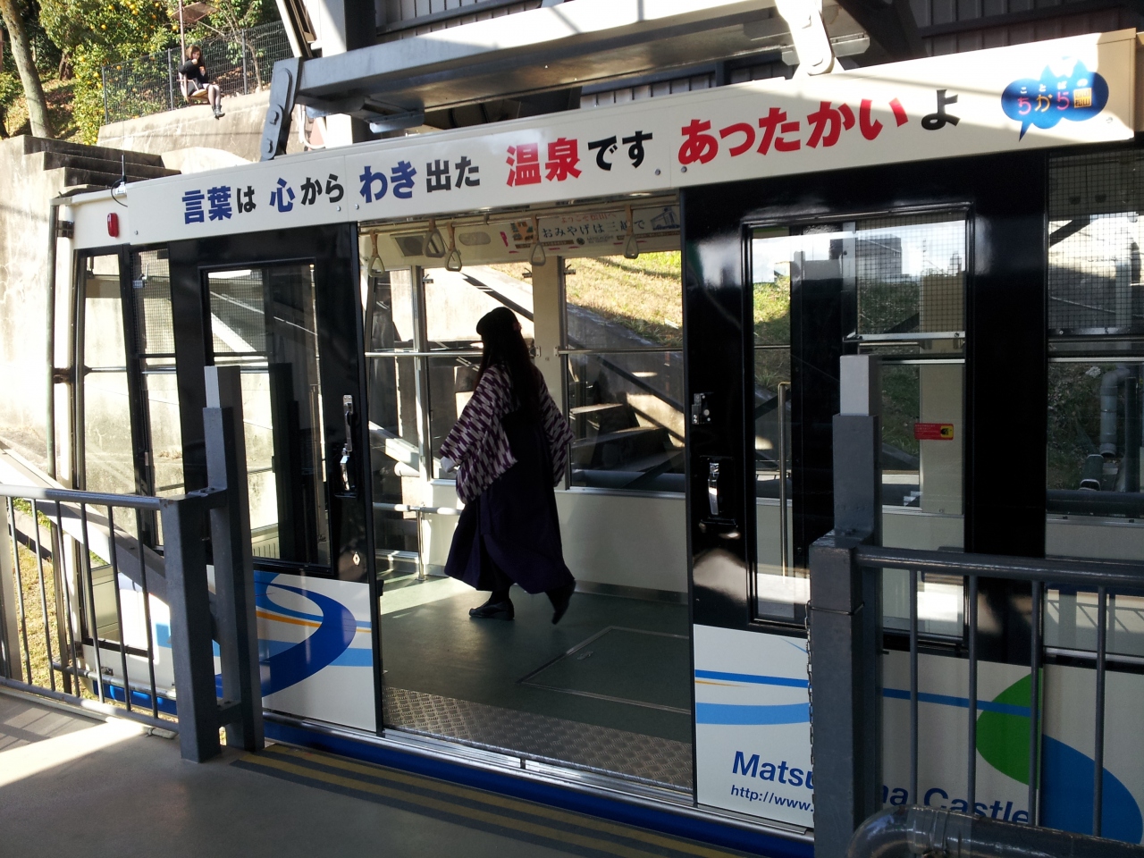 松山城近くまで行くには、これに乗ったほうがいい。