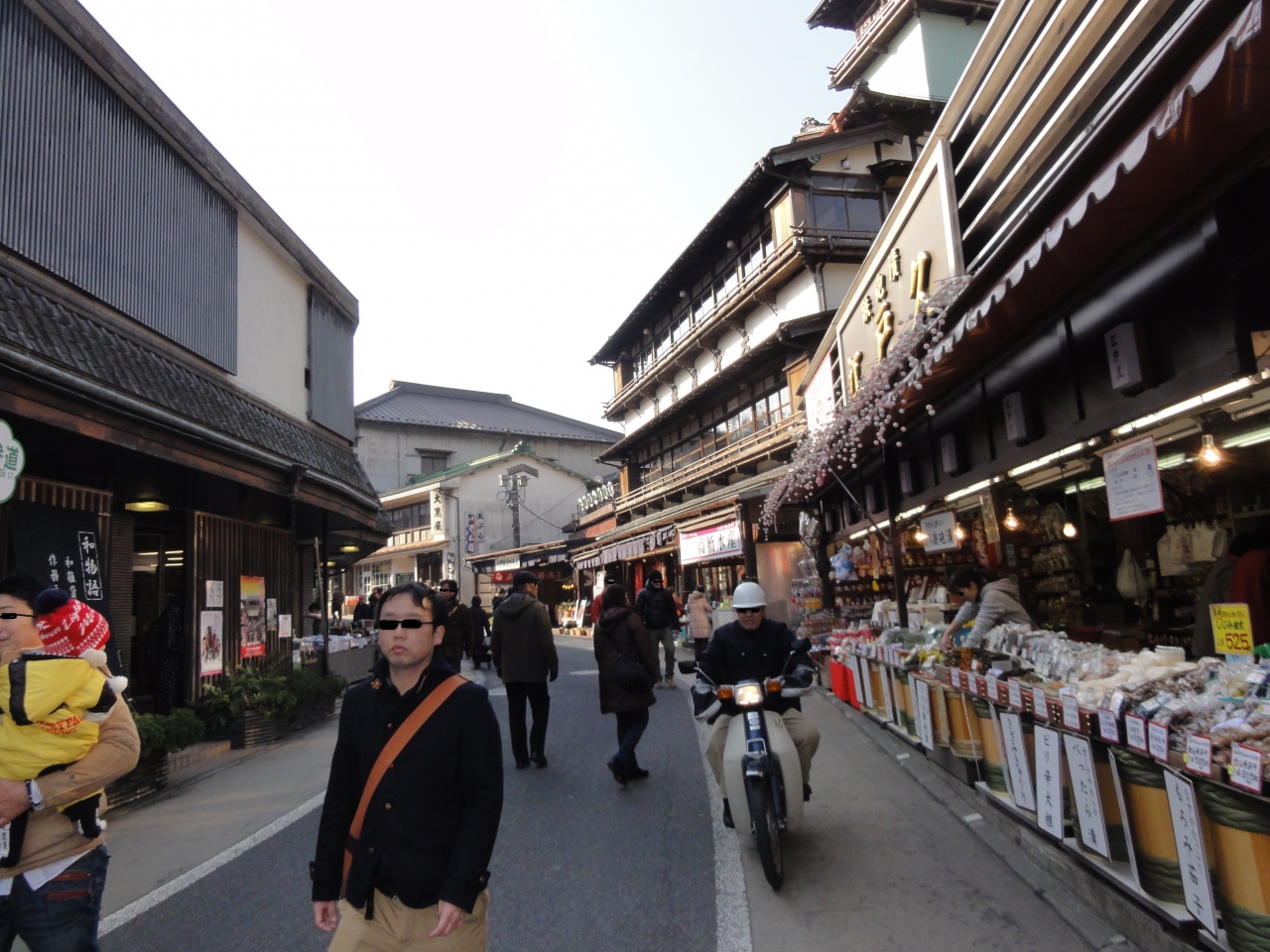 短い通りに手焼きせんべい、漬物屋、和雑貨、甘栗、昔ながらの竹製品他のお店、間に蜂蜜専門店やゆめ牧場など目新しいお店が並んでました。お詣りだけじゃなく、参道も歩いて、成田山に行って来たと思えました。総門から出て左側の坂道が老舗、右側に大きな米屋があります。