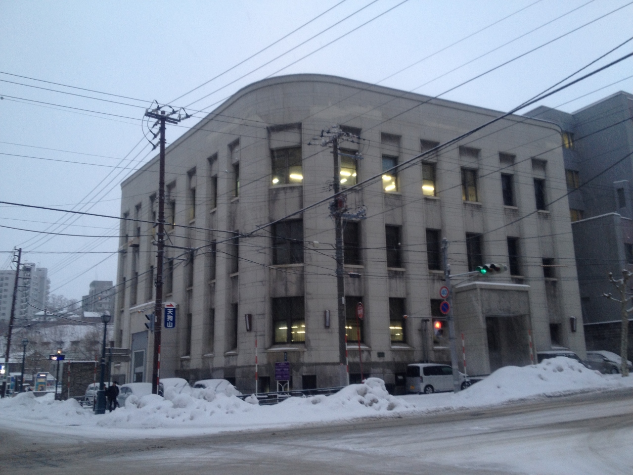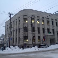 大正13年建築の鉄筋コンクリート造りで、周囲の銀行建築に比べると味気ない単なるコンクリートのかたまりに見えますが、北のウォール街と言われた角地に建つだけあって、角が丸みを帯びていますし、当時は大きな円柱があったそうです。