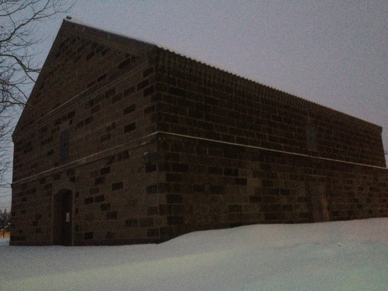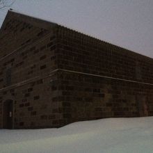 木骨石造りの倉庫で、平成10年の運河公園完成に合わせて、新しい石を使って建て直されたものです。