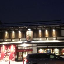 昭和2年建築の木造2階建てです。せがい造りという、腕木を手前に迫り出す軒先が特徴です。