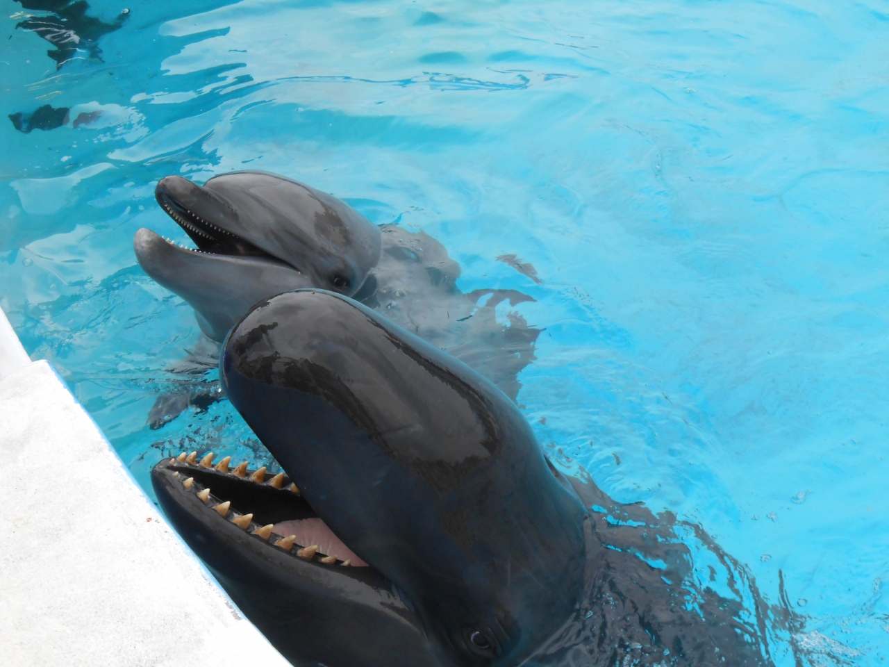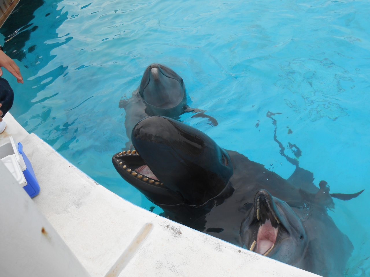 イルカたちは利口なので、お兄さんの姿を見つければ、