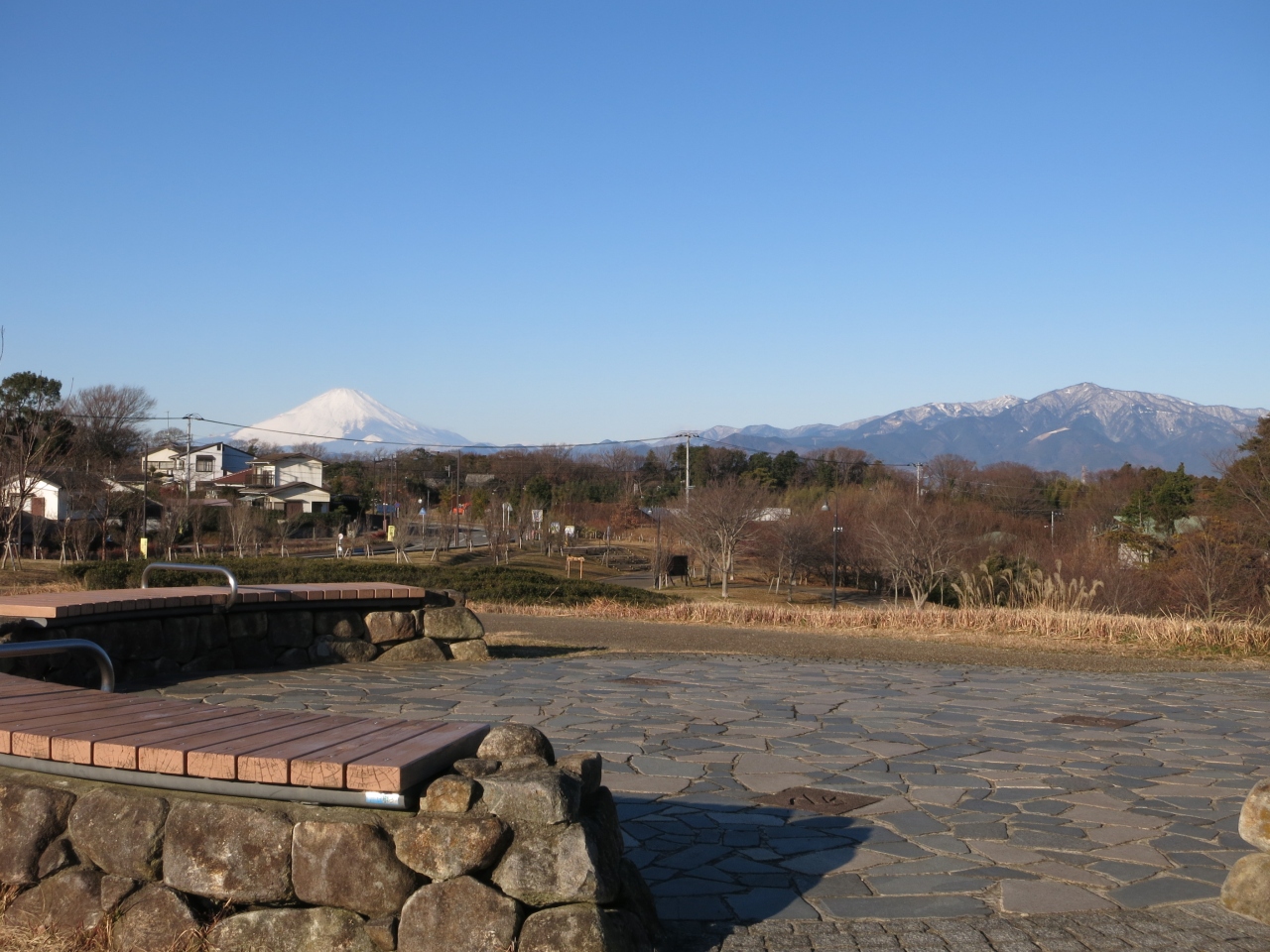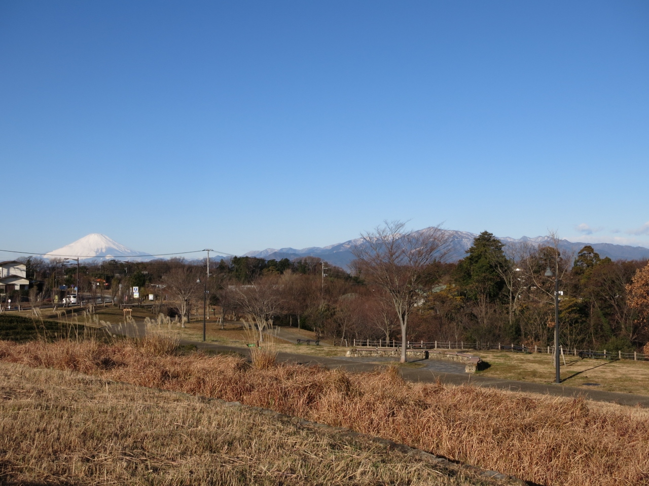 なお、空気が澄む冬場は富士山もきれいに眺められます。丘陵の公園内でも高いところ、パークセンターの裏手にある湘南の丘や、逆に下の方に下りた北駐車場のあたりからがよく見えると思います。