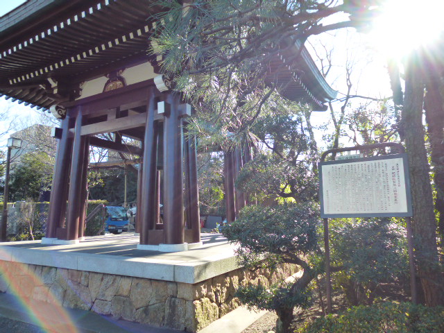 麻布十番の裏通り「大黒坂」に入口があります。長い階段を登りきると、正面に見事な鐘楼が、そして右を向くと本堂があります。